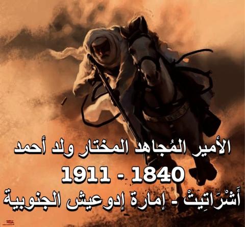 بمناسبة الذكرى الثالثة والستين لعيد الاستقلال الوطني قد يكون مفيدا التذكير ببعض أعلام المقاومة الوطنية، وببعض الشخصيات التي كان لها دور كبير في الدفاع عن حوزة هذه الأرض، وأعني الأمير المختار بن أحمد بن المختار بن امحمد شين أمير اشراتيت أو إمارة إدوعيش الجنوبية. وسيكون هذه المقال محاولة للتعريف بهذه الشخصية الفذة والمجاهد المهاجر.